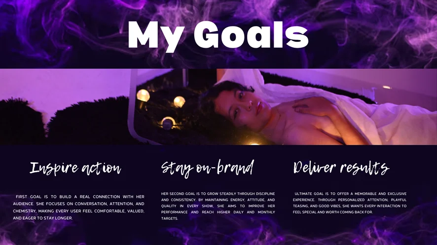 Догі-стайл, Ахеґао, Еротичні танці, Верблюжа лапка, Мастурбація пальцями, Фут-фетиш, Дилдо або вібратор, Стриптиз, Інструкція з мастурбування, Масаж, Оргазм, Жорсткий секс, Топлес, Тверкінг, Сквірт, Брудні розмови, Глибоке горло, Приниження, Секс-іграшки, Мастурбація, Підбори, Олійне шоу, Фут-джоб
